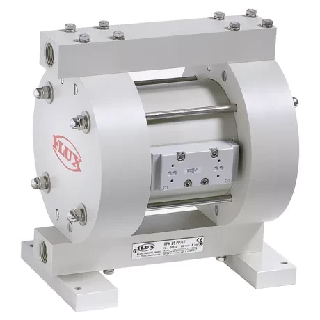 Die FLUX Druckluft-Membranpumpe RFM/RFML 25 in Massivbauweise ist selbstansaugend und trockenlaufsicher. Sie zeichnet sich durch ihre Vielseitigkeit aus und kann zum Fördern von niederviskosen bis hochviskosen Medien mit festen Partikeln, abrasiven, Medien, leicht brennbaren Stoffen oder Flüssigkeiten mit hohem Gasanteil benutzt werden.