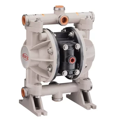 Die FLUX Druckluft-Membranpumpe FDM 12 in gespritzter Ausführung ist selbstansaugend und trockenlaufsicher. Sie zeichnet sich durch ihre Vielseitigkeit aus und kann zum Fördern von niederviskosen bis hochviskosen Medien mit festen Partikeln, abrasiven Medien, leicht brennbaren Stoffen oder Flüssigkeiten mit hohem Gasanteil benutzt werden.