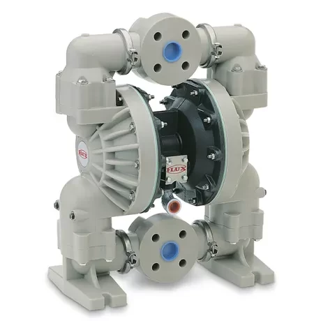 Die FLUX Druckluft-Membranpumpe FDM 40 in gespritzter Ausführung ist selbstansaugend und trockenlaufsicher. Sie zeichnet sich durch ihre Vielseitigkeit aus und kann zum Fördern von niederviskosen bis hochviskosen Medien mit festen Partikeln, abrasiven Medien, leicht brennbaren Stoffen oder Flüssigkeiten mit hohem Gasanteil benutzt werden.
