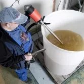 Die Fasspumpe F 426 ist ideal zum Mischen und/oder Fördern von inhomogenen Medien. So kann man mit ihr Medien, die zur schnellen Entmischung neigen, auch während des Fördervorgangs in Bewegung halten. Bei geschlossenem Auslauf, z. B. über eine Zapfpistole, lässt sich die Fasspumpe F 426 auch vorübergehend als reine Mischpumpe betreiben. Das Umstellen zwischen „Mischen“ und „Fördern“ erfolgt ganz einfach durch Verdrehen eines Stellhebels. Die Fasspumpe lässt sich zur Reinigung leicht demontieren. Die Fasspumpe ist in den Werkstoffen Edelstahl und Polypropylen erhältlich. In der Edelstahl-Version kann die F 426 auch im Ex-Bereich eingesetzt werden.