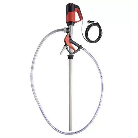 Vorkonfektioniertes Pumpen-Set zum Abfüllen von Adblue®. Bestehend aus buntmetallfreier, im Mediumsbereich dichtungsloser Pumpe F 424, Kollektormotor FEM 4070, Schlauchleitung, Zapfpistole und Fassverschraubung.