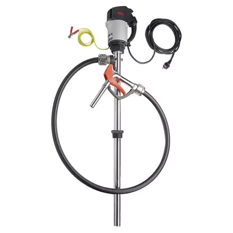 Vorkonfektioniertes Pumpen-Set zum Fördern unterschiedlichster Medien aus 200 l Fässern (Eintauchtiefe 1000 mm) oder IBCs (Eintauchtiefe 1200 mm). Bestehend aus Fasspumpe F 430, Außenrohrwerkstoff Edelstahl, Schlauchleitung, Zapfpistole und Fassverschraubung. Antrieb wahlweise durch Kollektormotor F 460 oder Druckluftmotor F 416.